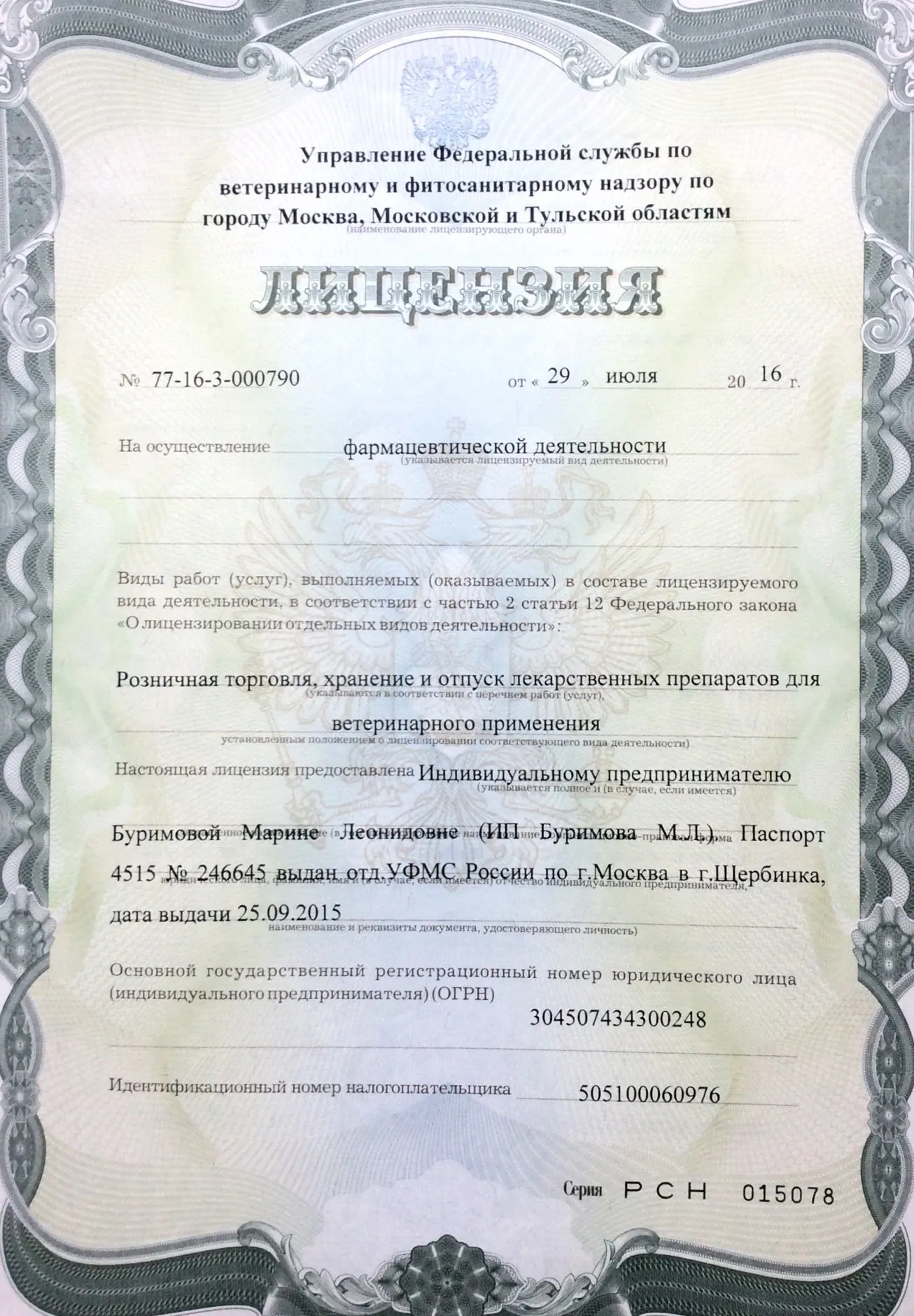 Лицензия на осуществление фармацевтической деятельности